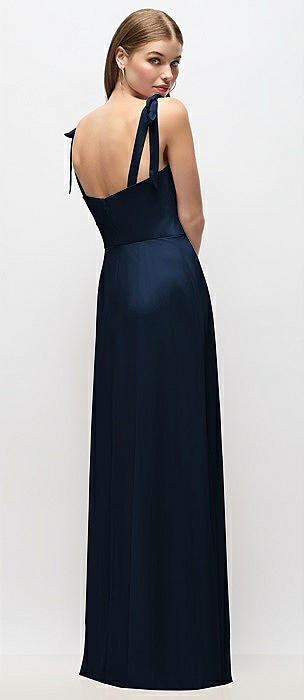 Tie-Shoulder Chiffon Maxi Dress with Front Slit in midnight navy