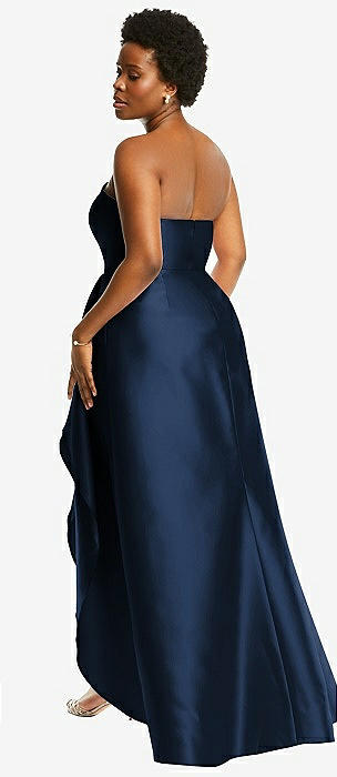 Strapless Satin High Low Dress with Pockets in midnight navy
