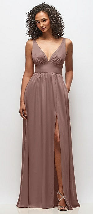 Deep V-Neck Shirred Skirt Maxi Dress with Convertible Straps in sienna