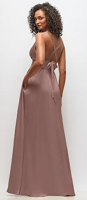 Draped Satin Grecian Column Gown with Convertible Straps in sienna