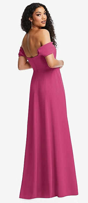 Cuffed Off-the-Shoulder Pleated Faux Wrap Maxi Dress in tea rose