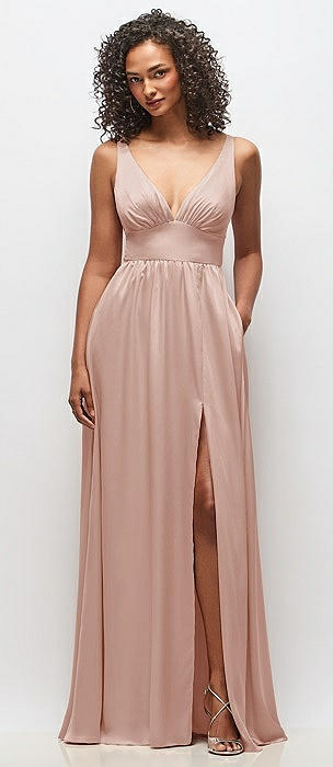 Deep V-Neck Shirred Skirt Maxi Dress with Convertible Straps in toasted sugar