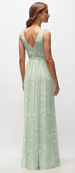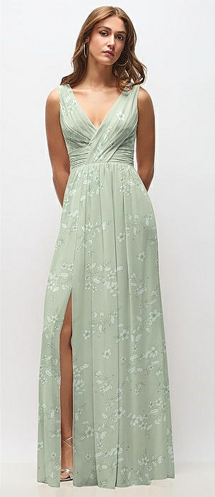 Sleeveless Draped Chiffon Maxi Dress with Front Slit in vintage primrose sage