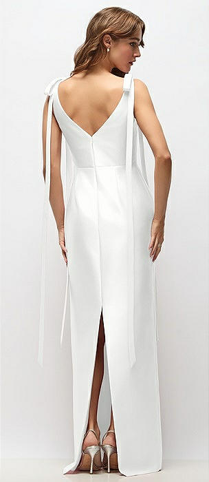 Bateau Neck Satin Column Maxi Dress with Exaggerated Tail Bow Straps in white