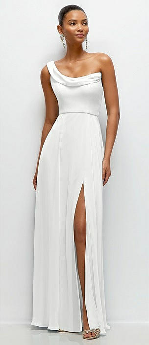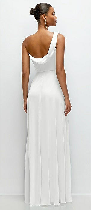 Chiffon One-Shoulder Maxi Dress with Draped Cowl Neckline in white