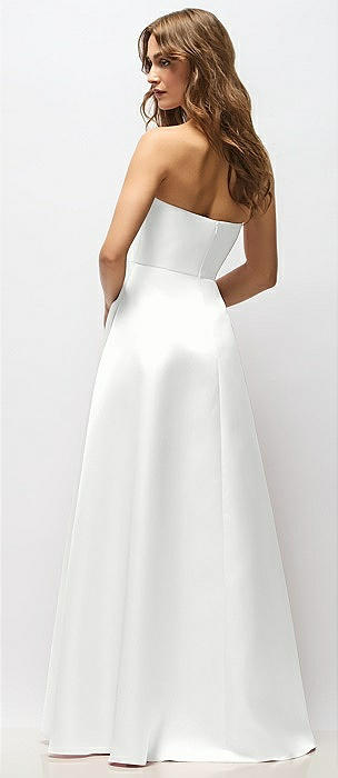 Strapless Satin Column Dress with Removeable Watteau Train in white