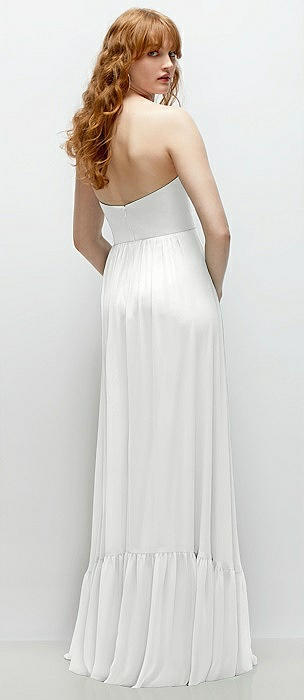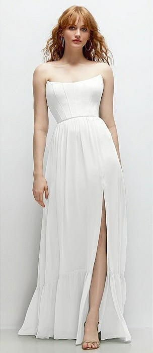 Strapless Cat-Eye Boned Bodice Maxi Dress with Ruffle Hem in white
