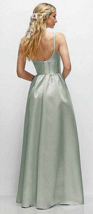 Strapless Bias Cuff Bodice Satin Gown with Pockets in willow green