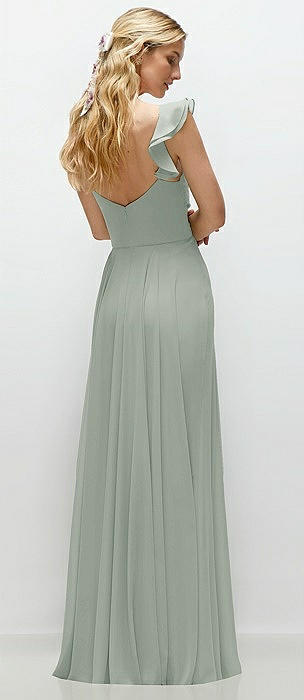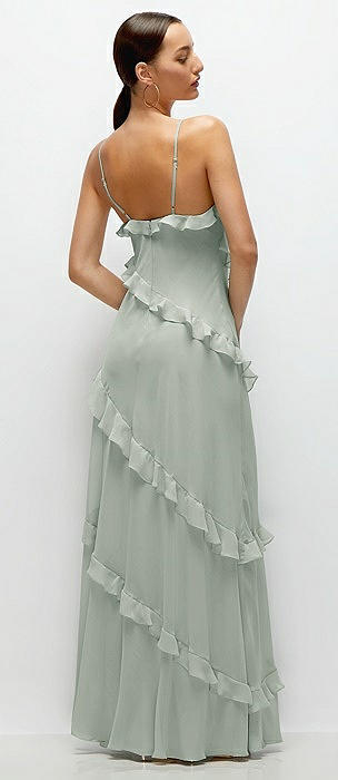 Asymmetrical Ruffle Chiffon Bias Slip Maxi Dress in willow green