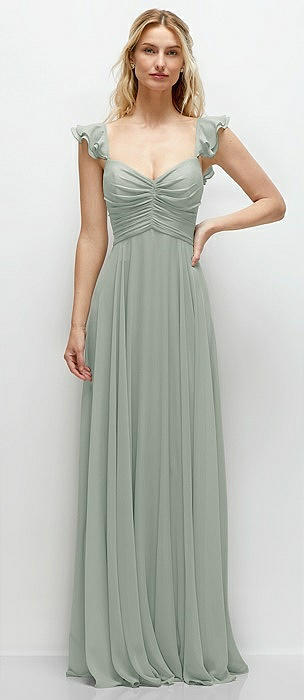 Ruffle Strap Chiffon Bustier Maxi Dress with Ruffle Hem A-Line Skirt in willow green