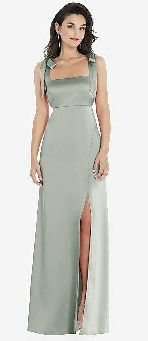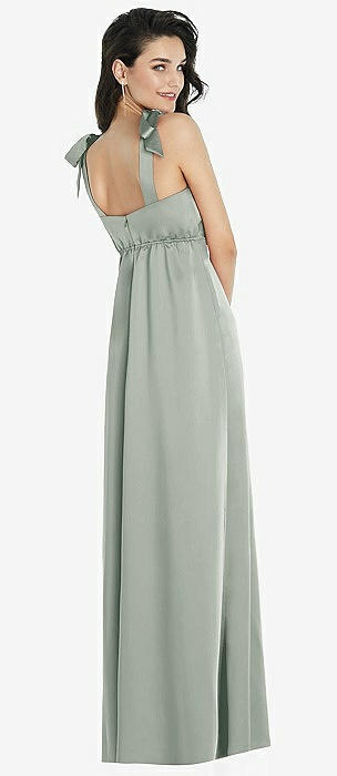 Flat Tie-Shoulder Empire Waist Maxi Dress with Front Slit in willow green