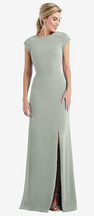 Cap Sleeve Open-Back Trumpet Gown with Front Slit in willow green